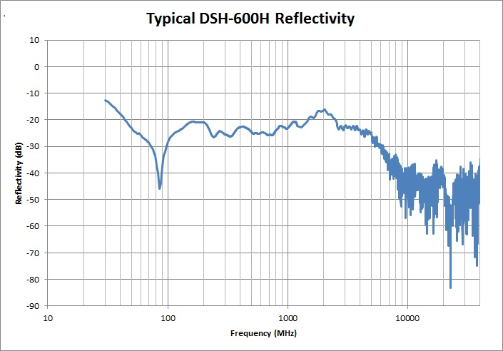 The DSH-600H provides a smooth transition from free space impedance to the lossy ferrite tile base. As a result of its optimized design, high performance is guaranteed not only at the lower frequency band, but also at above 1 GHz. It has a reflectivity better than 17 dB from 60 MHz to 3 GHz, and better than 20 dB at above 4 GHz. At frequencies above 8 GHz, the reflectivity exceeds 35 dB. The absorption levels make DuraSorb ideal for treating semi-anechoic chambers for 3m and 5m range measurements per the CISPR 16 and ANSI C63.4 standards, it also meets the requirements of MIL-STD-461 and CISPR 25 standards. DuraSorb is manufactured by injecting uniformly loaded lossy materials in predetermined geometric shapes to produce the desired performance. After the lightweight substrates have been molded, they are shipped disassembled to job-sites for reduced shipping volume. Easily assembled at the site, finished absorbers are pressed and glued into a lightweight polystyrene universal mounting base on the walls and ceiling of the chamber. This method assures absorber rows are aligned with geometric precision.