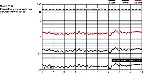 Once used exclusively for MIL-STD and SAE testing, conical log spiral antennas are effective for other types of measurements too. For example they can be used for close-in "quick-looks" to find the spectral characteristics of RF emissions. For immunity testing, conical log spirals generate reasonable field strengths with modest power input. By placing conical log spiral antennas in a vertical position with respect to the ground plane, they can also be used as omnidirectional, horizontally polarized antennas for electromagnetic site surveys. The Model 3102 Conical Log Spiral is also used as a communication antenna in support of over-the-air wireless device testing.