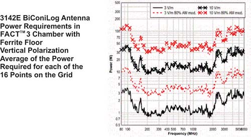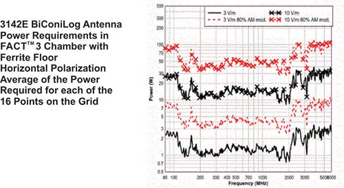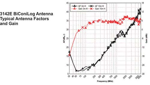 Emission measurements can be performed without having to change antennas. For immunity measurements, the 3142E covers the typical 80 MHz to 6 GHz range.