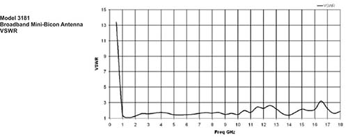 The model 3181 as designed to have the lowest possible VSWR across its range of operation. The antenna exhibits better than 2: 1 VSWR for most of its range, and never exceeds 4: 1 above 1 GHz.