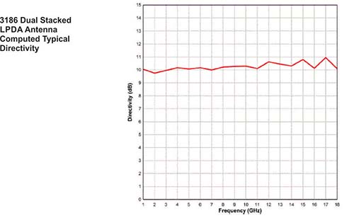 ETS-Lindgren's Model 3186 is a dual stacked log periodic dipole array antenna (LPDA), each of the two separate LPDAs comprising the dual array are 100 antennas. When assembled in parallel, the results are a 50 input impedance array. This array provides increased gain when compared to a single LPDA. The arrangement of the two LPDA in the arrays provides a very constant pattern across the entire frequency range.