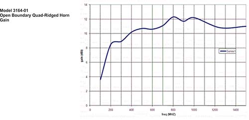 Like the other 3164 series horns, the 3164-01 has a very fat gain performance for the upper 2/3 of its frequency range. The gain variation over that upper range is usually less than 2 dB variation.
