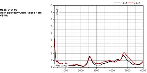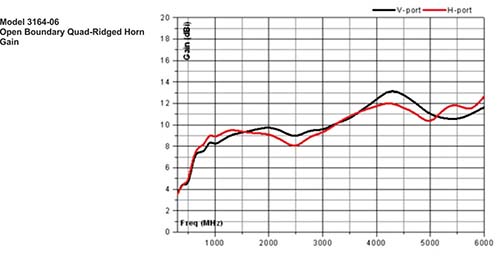 ETS-Lindgren's Model 3164-06 Open Boundary Quad-ridged Horn Antenna's open boundary design is similar to two double-ridged waveguide antennas orthogonally to each other. The antennas surprisingly compact size offers improved pattern and gain when compared with enclosed quad-ridged horns of similar dimensions.