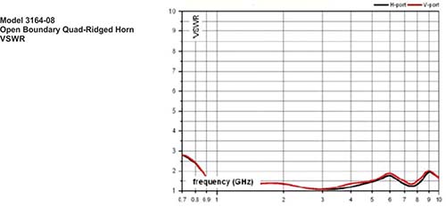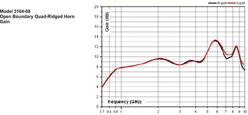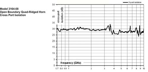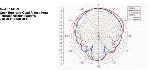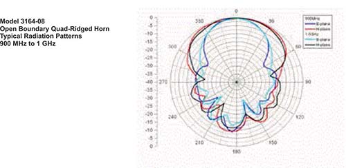 Numerically modeled, the model 3164s open boundary design is similar to two double-ridged waveguide antennas placed orthogonally to each other.