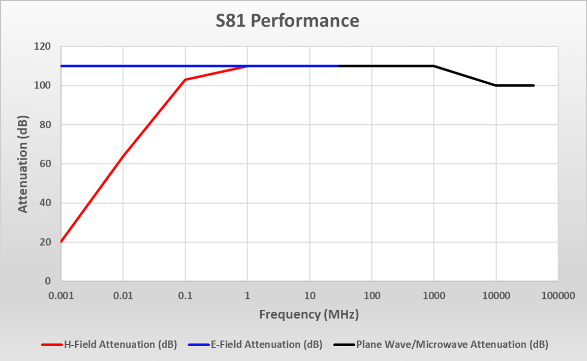 Series 81 RF shielding provides excellent RFI and EMI shielding effectiveness and is the most commonly specified shielding for NSA 65-6/NSA 94-106 testing requirements. Series 81 delivers high performance attenuation over a broad frequency range and complies with a variety of other specifications including: