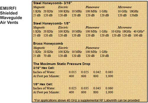 EMI/RFI Shielded Waveguide Air Vents - ETS-Lindgren